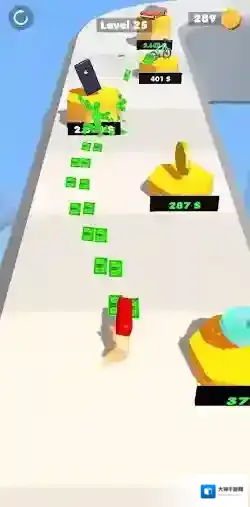 最富枪王(Moneygun Run),一款魔性有趣的休闲跑酷类手游。玩家们需要控制一把钞票枪前行,过程中可以拾取道具增强自己的火力,途中还会遇到各种有价值的物品,你需要用钞票枪将它们全部买下,这样回到终点后就可以将物品摆放上货架,为你带来源源不断的金币!收集了金币之后,可以用来升级自己的钞票枪,让你可以进入更多场景畅快的“进货”,同时还有着各式各样的皮肤可以解锁呢!