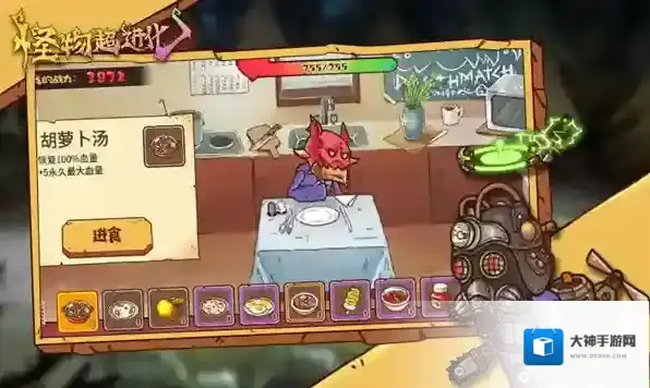 2、怪物超进化点击头部、身体、手臂、腿部或者尾部实现进化,每次的进化都能为你带来血量、物理伤害、秘术伤害和技能的加成