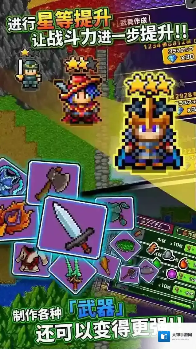 1.采用复古像素画风,呈现经典RPG视觉风格